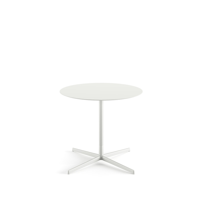 Runder Tisch mit Gestell aus lackiertem Aluminium, ausgestattet mit verstellbaren Beinen. Platte Ø 79 cm aus Compact HPL (Dicke 1 cm) Höhe 72,5 cm.