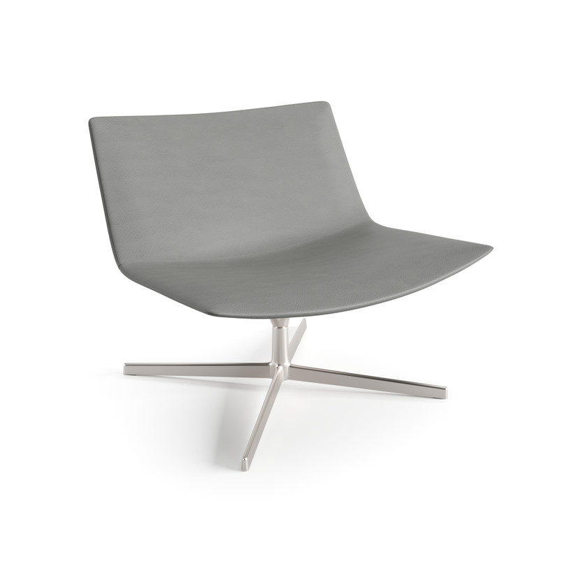 Lounge chair with central structure in glossy or painted aluminium with return mechanism. Polyurethane body upholstered with fabric, leather, coated fabric or the customer’s choice of covering.