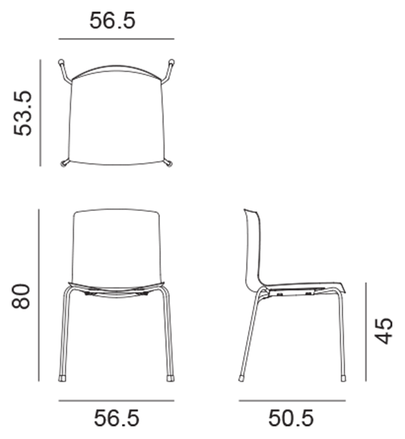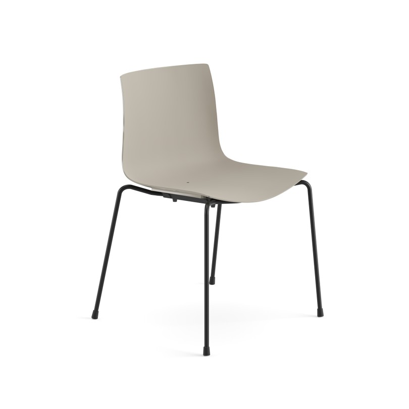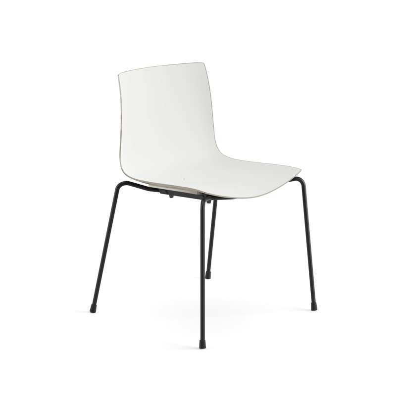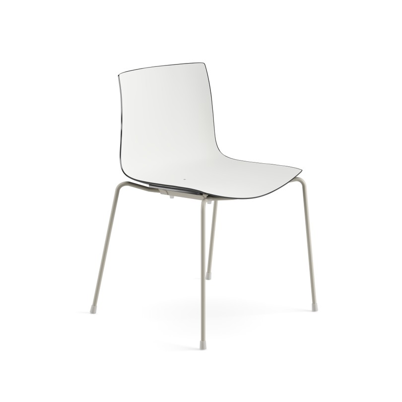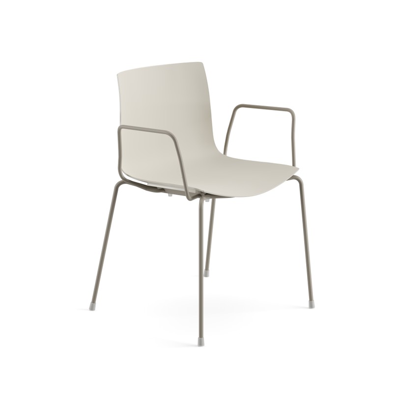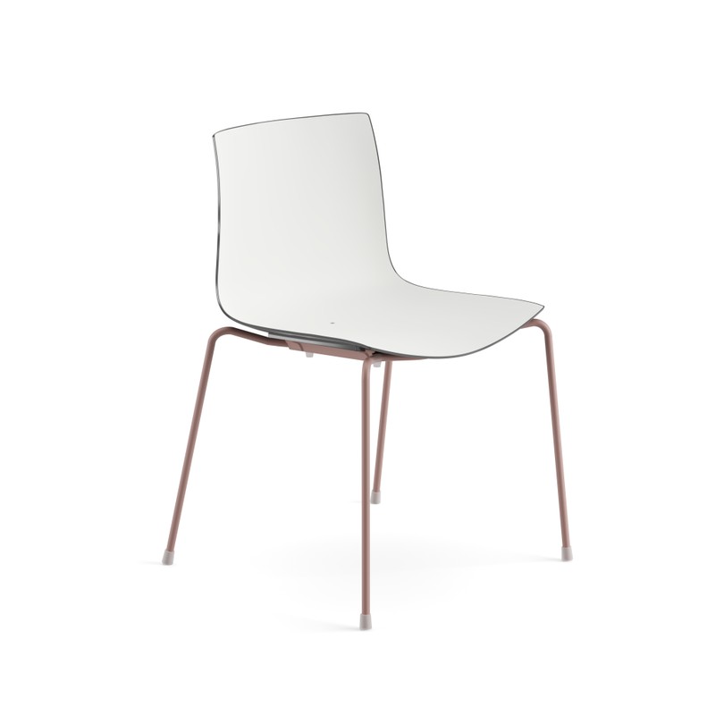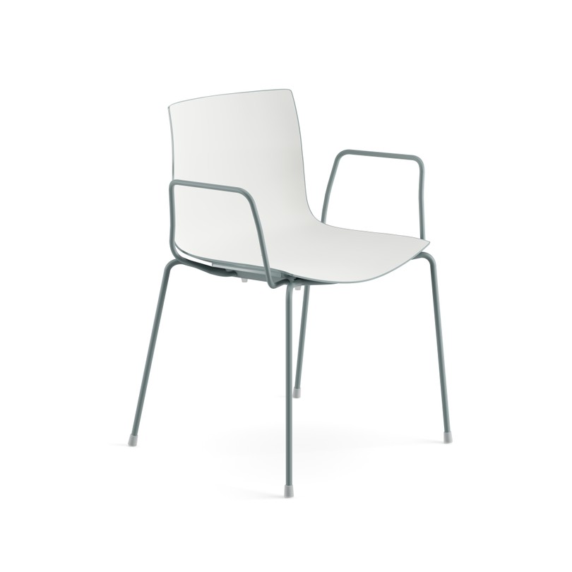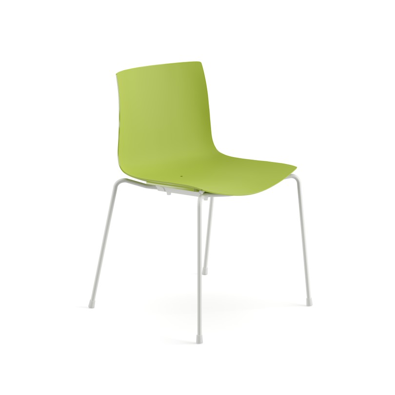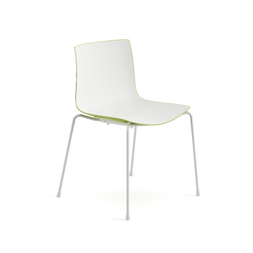 Seduta su fusto a quattro gambe, disponibile con struttura in acciaio verniciato. Scocca in polipropilene monocolore o polipropilene bicolore. In optional sono disponibili braccioli nella stessa finitura del fusto, anche con pad in polipropilene. Versione adatta all'utilizzo outdoor.