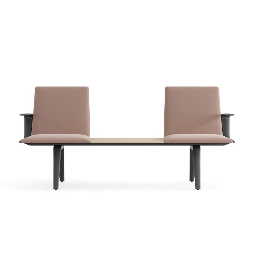 Waiting bench composed by a metal frame and powder coated aluminium legs with height-adjustable glides. The structure, equipped with side and intermediate armrests in die-cast aluminium, is available in three sizes to accommodate three, four or five units respectively, which can be occupied by seat modules and a central or intermediate table.